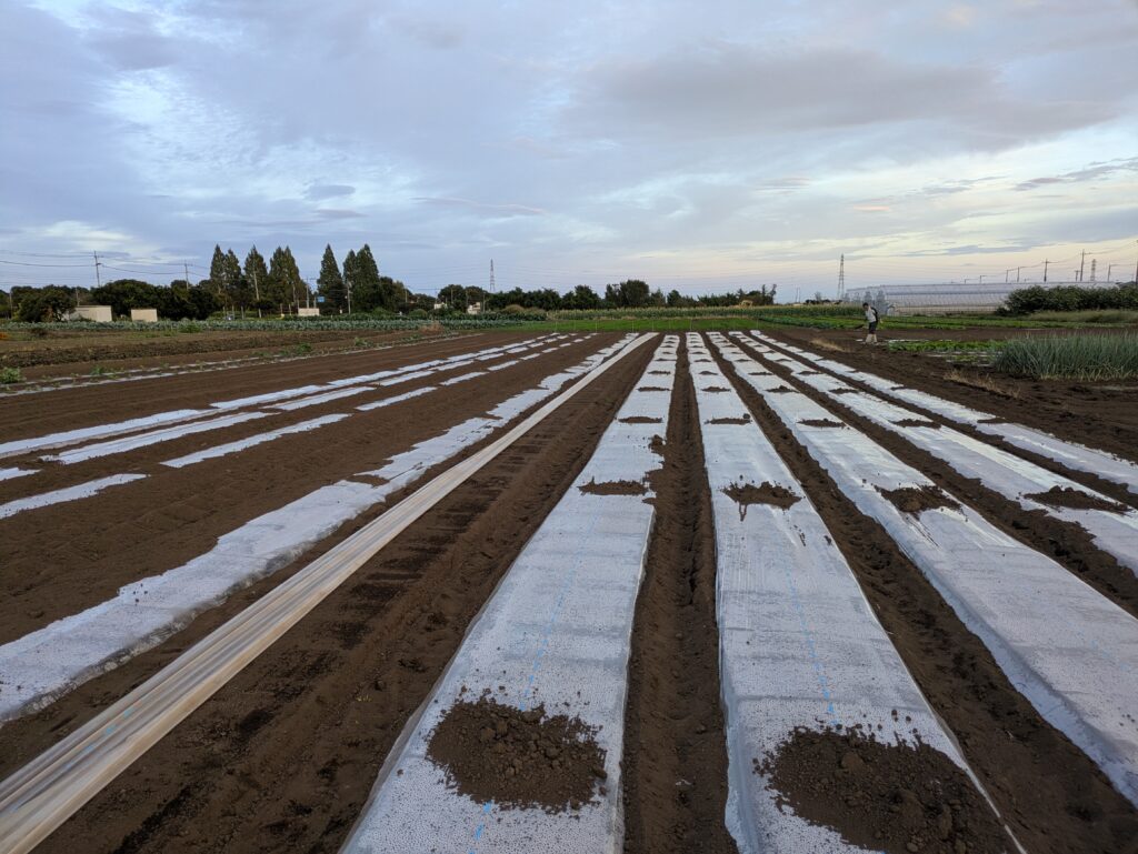 こうすると畝間部分は消毒できないことになるが、マルチャーを使えるので、作業負荷とコストが軽減できるのではないかと考えてチャレンジ