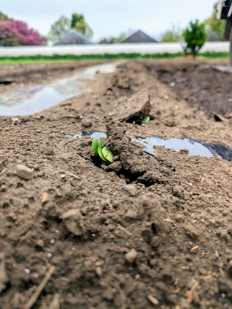 育苗ハウスを活用して苗を作ってきたけど4月以降は、作業効率も考えて直播に切り替えた枝豆くんととうもろこしクン